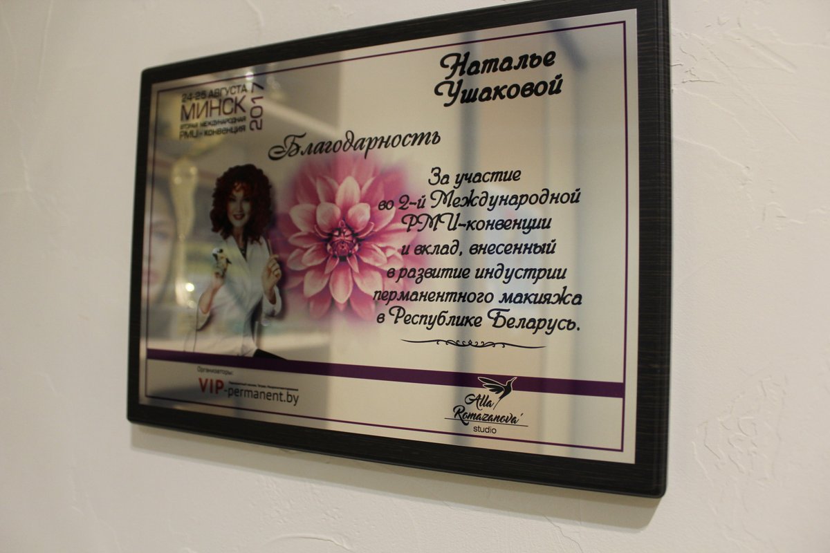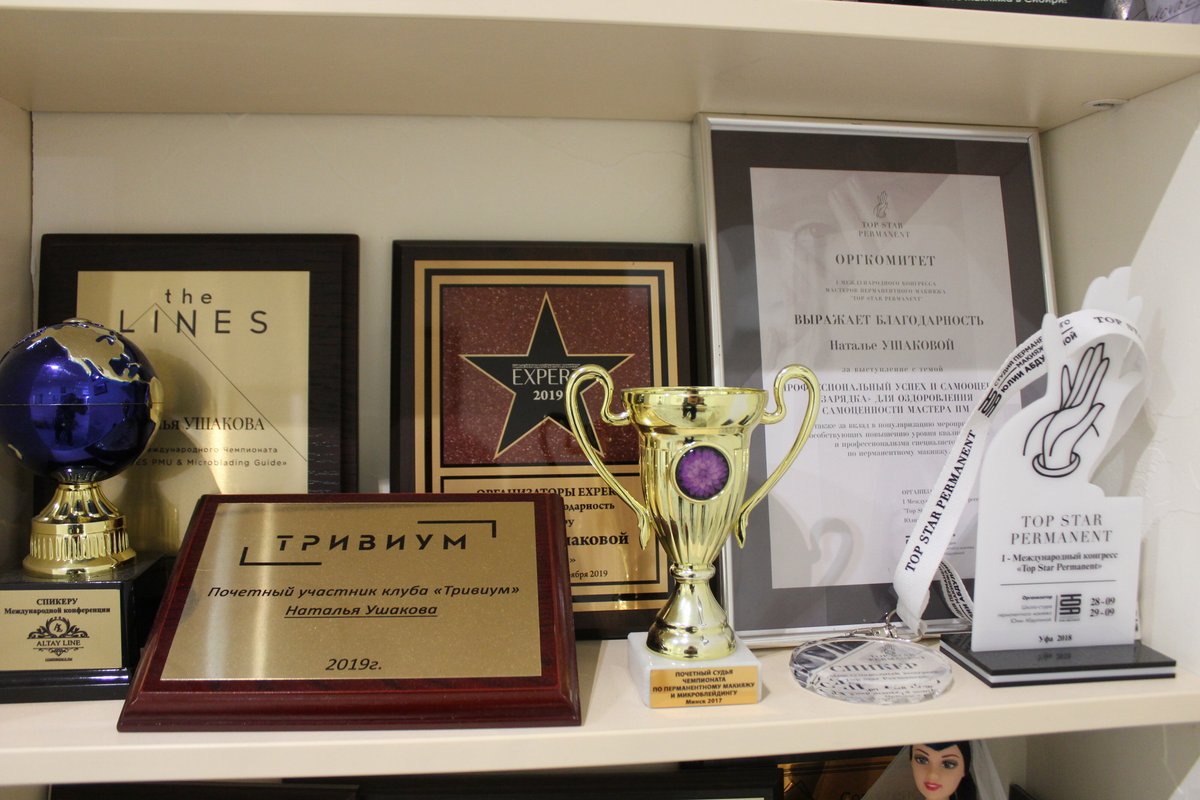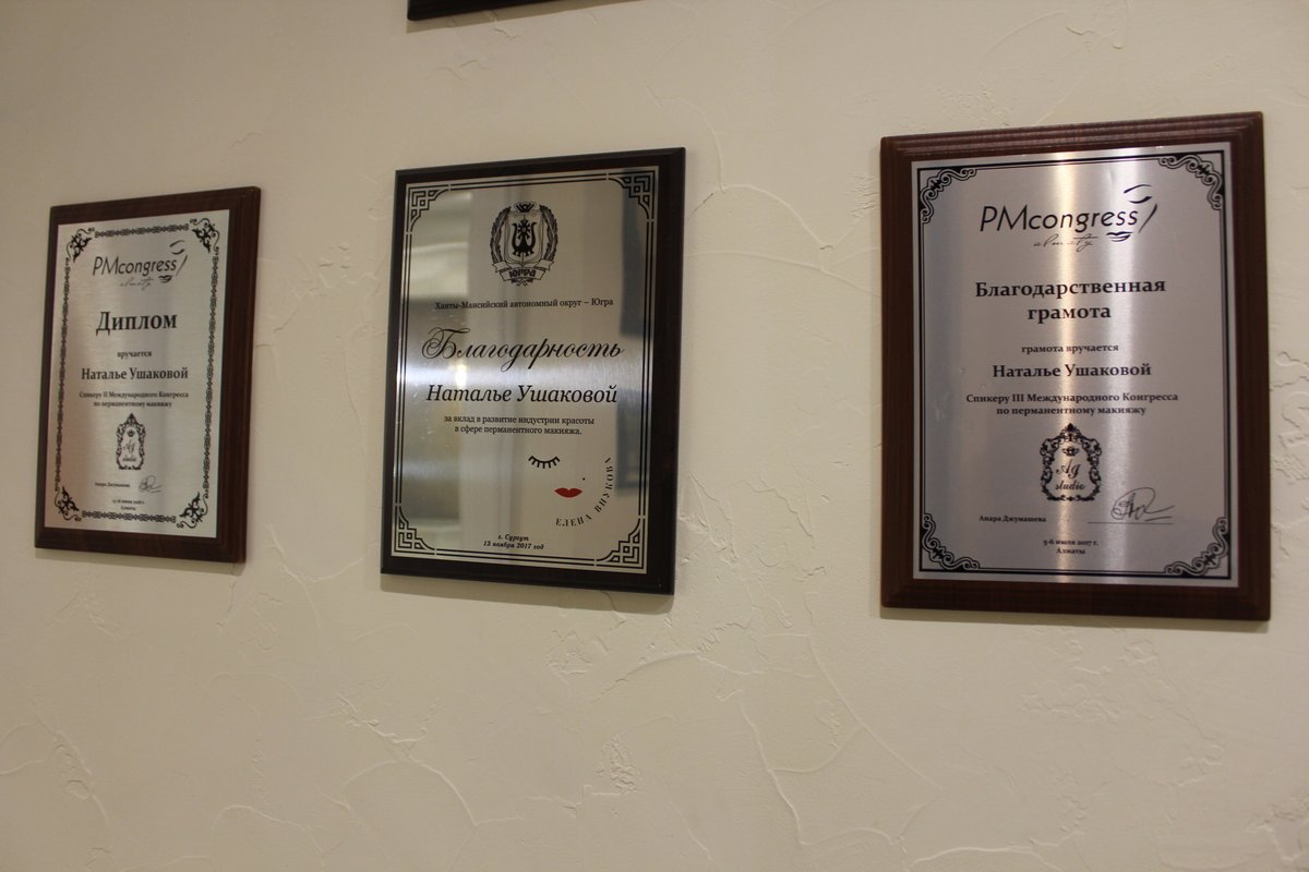 Обучалась перманентному макияжу у Натальи Ушаковой в 2014 году, за 2 года работы сделала